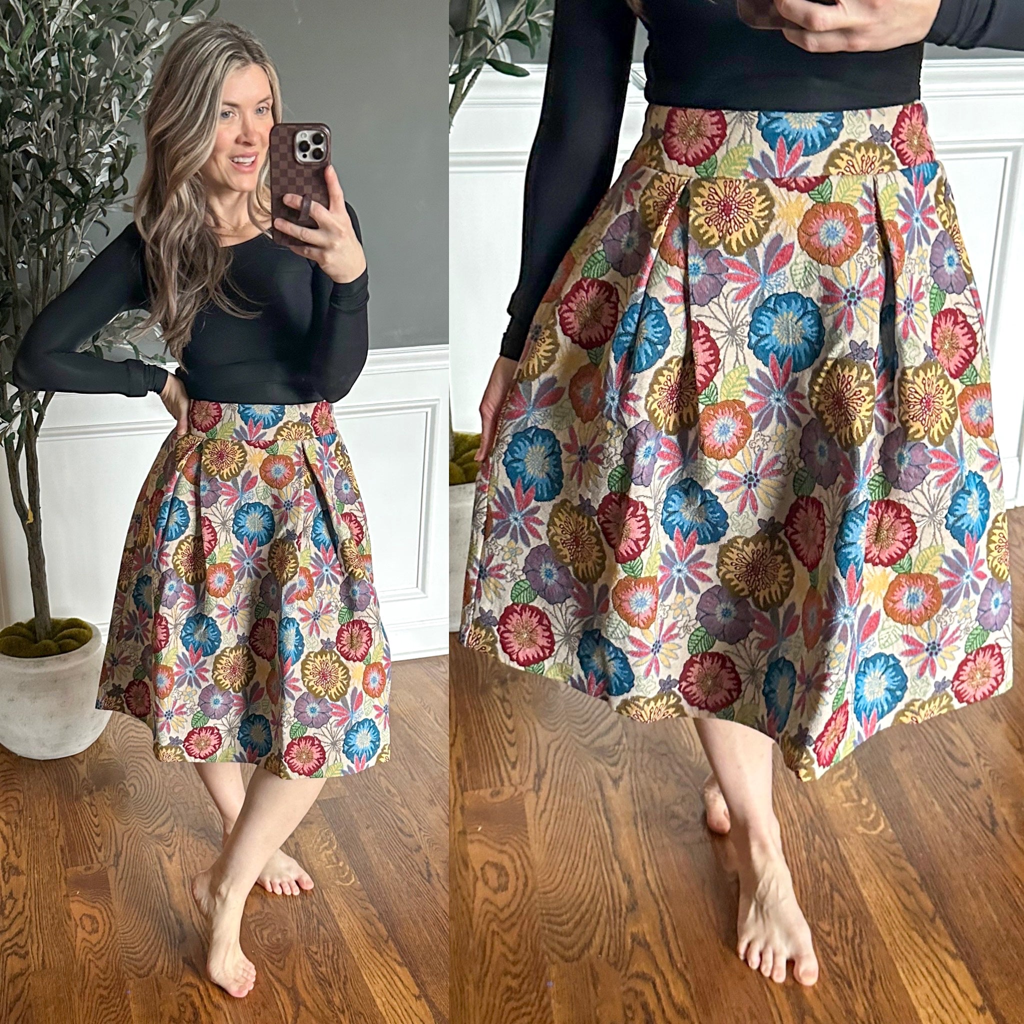 The Sound Mind Floral Midi Skirt is a breath of fresh air for your wardrobe. This structured jacquard piece showcases beautiful floral details that demand attention, while pleats add graceful movement and dimension. The cased elastic back waistband keeps you comfortable all day long, and the functional white zipper closure adds a modern touch. Pair it with your favorite top for an instantly put-together look that feels anything but basic.