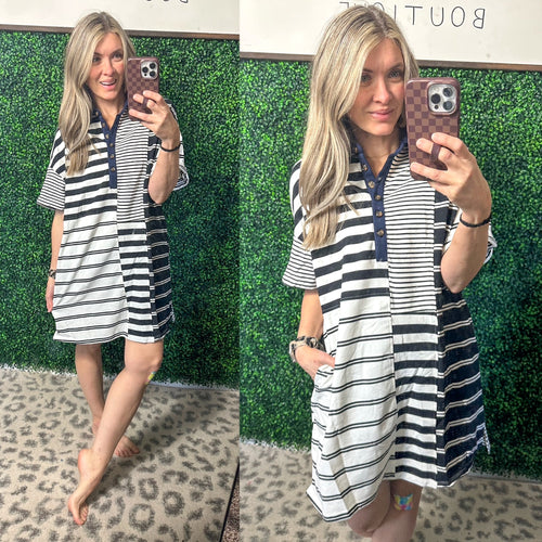 Everlasting Love Striped Collared Dress in Black and Navy