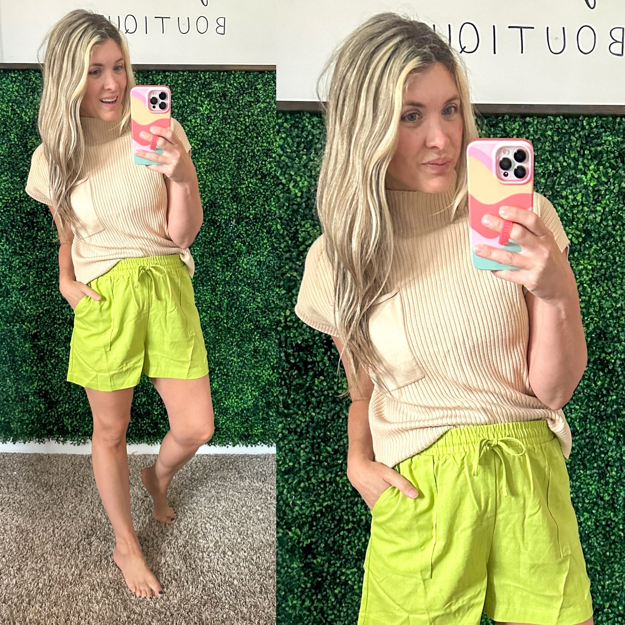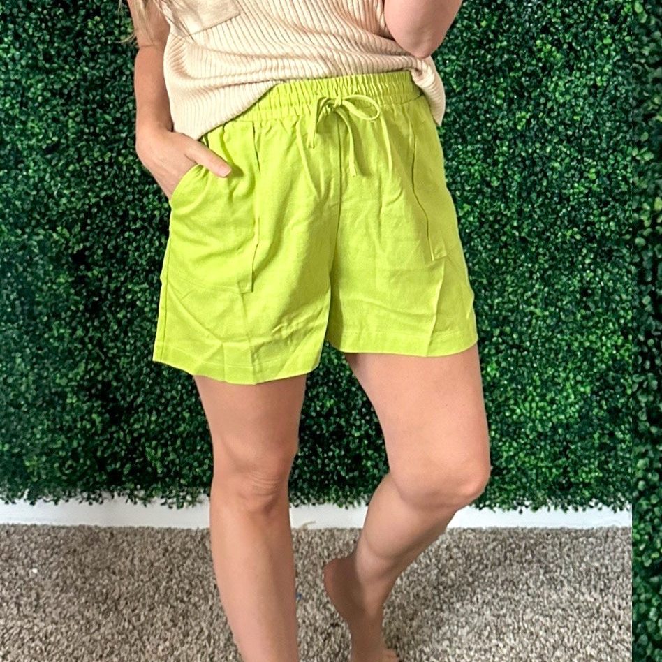 Our Ray of Sunshine Linen Shorts bring a pop of color to any wardrobe. Crafted from a lightweight linen blend, they feature an elastic waistband for a comfortable fit and convenient pockets. Stay stylish and stay cool with these perfect summer shorts. What's more sunshine-y than that?