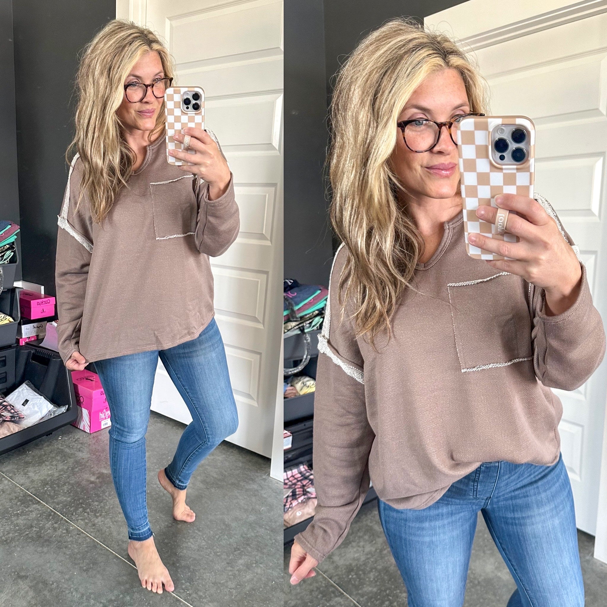 Experience ultimate comfort with our Spring In My Step V-Neck Pullover! Made with French terry fabric, this pullover features a V-neckline and drop shoulder for a casual and cozy look. The neutral color adds versatility to any outfit making it the perfect basic for the chilly season!