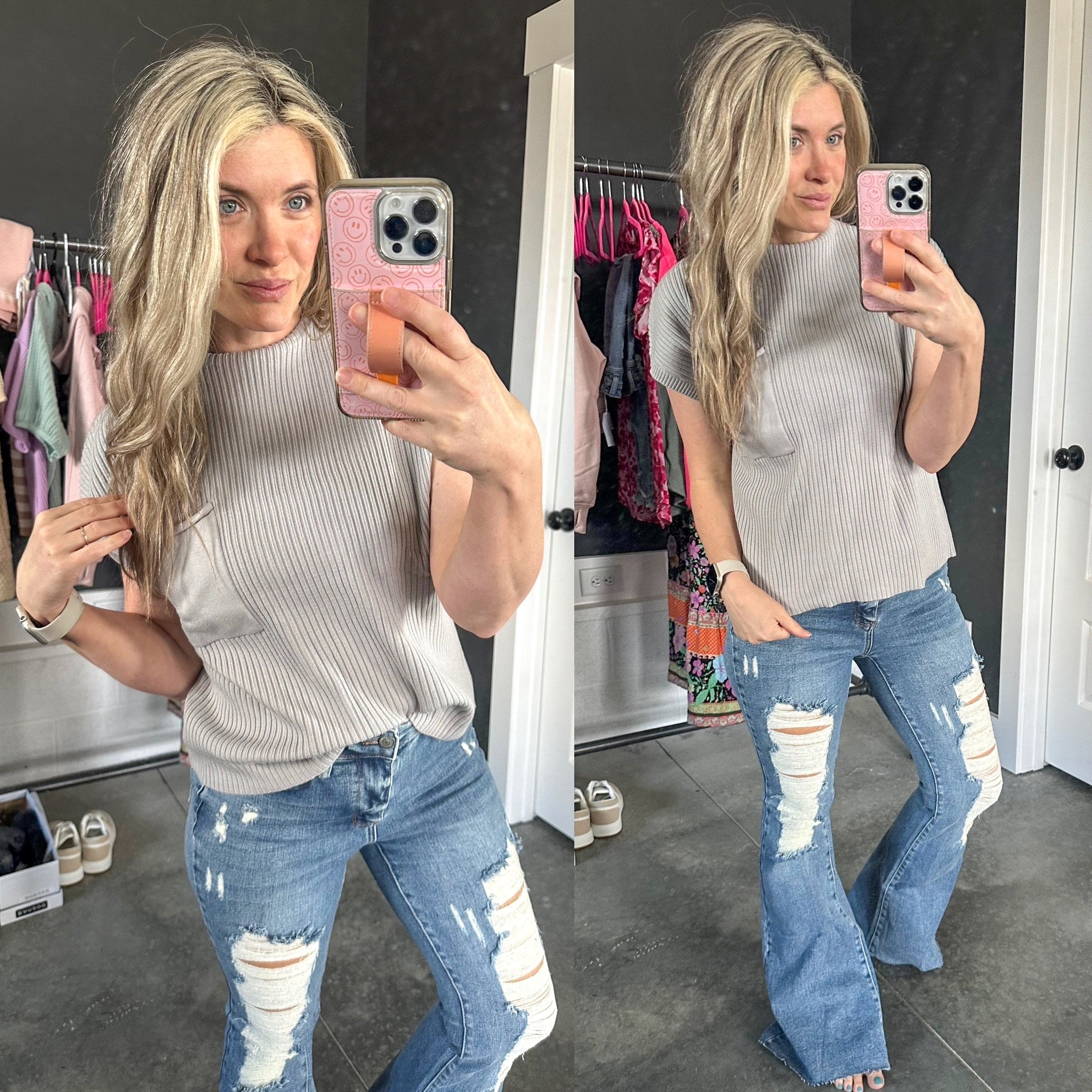 This Little Life Mock Neck Short Sleeve Sweater in Grey