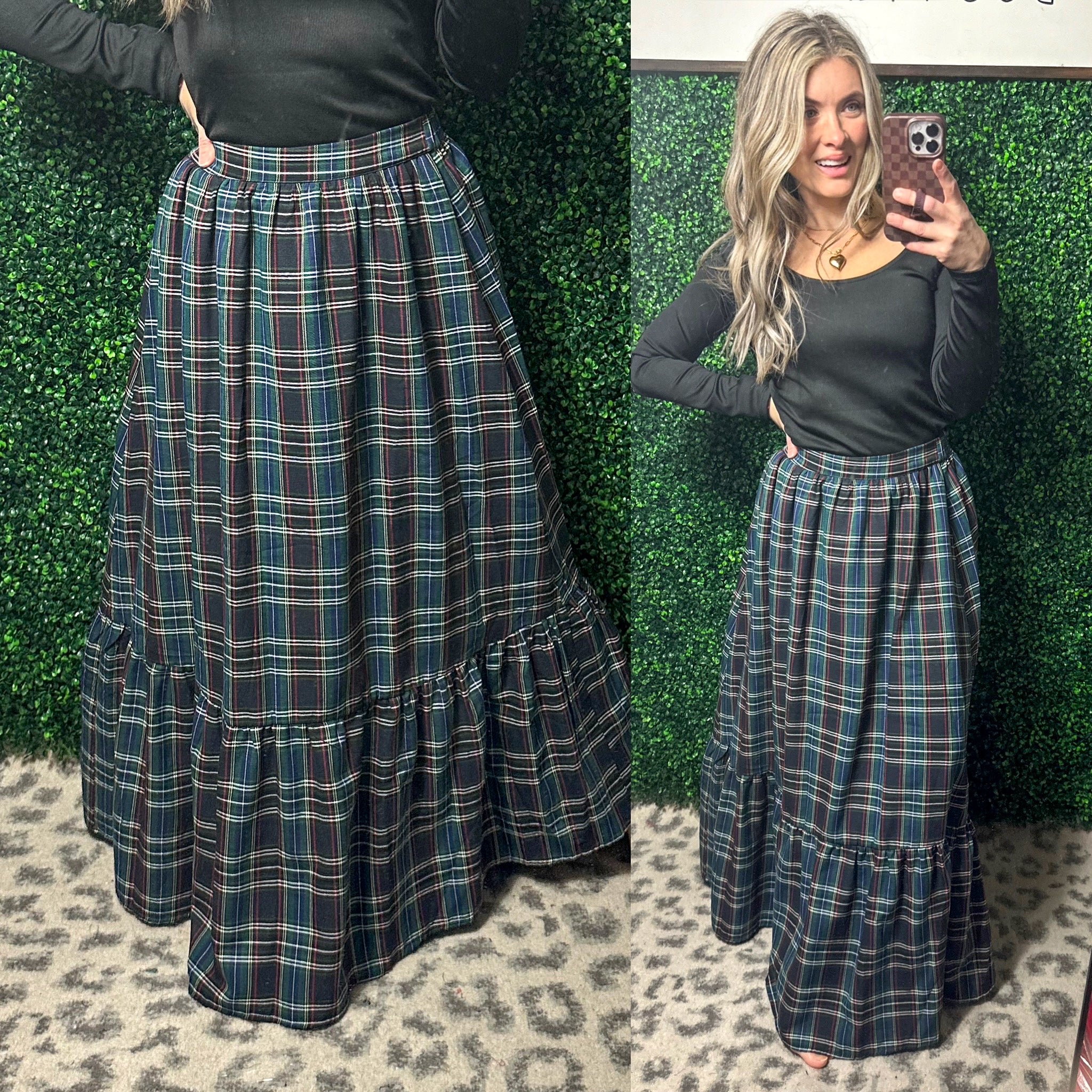 Make a statement this season in our Plaid Perfection Maxi Skirt. With its classic plaid design and modern tiered hem, this piece is perfect for any wardrobe. The elastic waistband ensures all-day comfort and a perfect fit. Create your own unique look with this must-have maxi skirt.