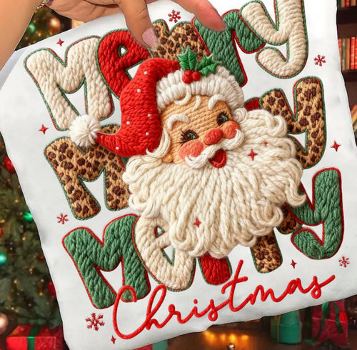 Faux Tufted Santa Graphic Tee and Sweatshirt