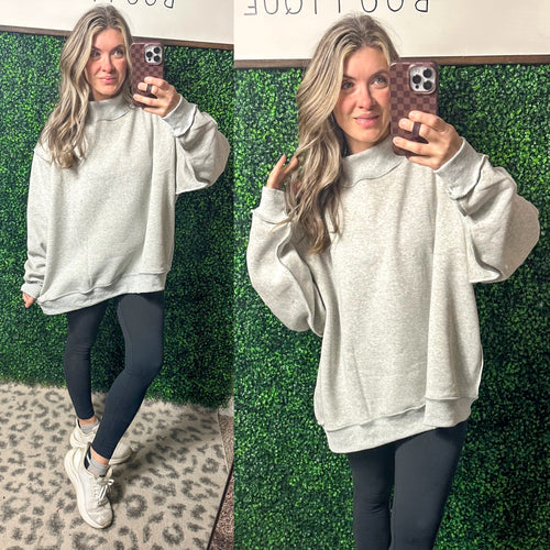 Mock Neck Sweatshirt-Reversible Grey