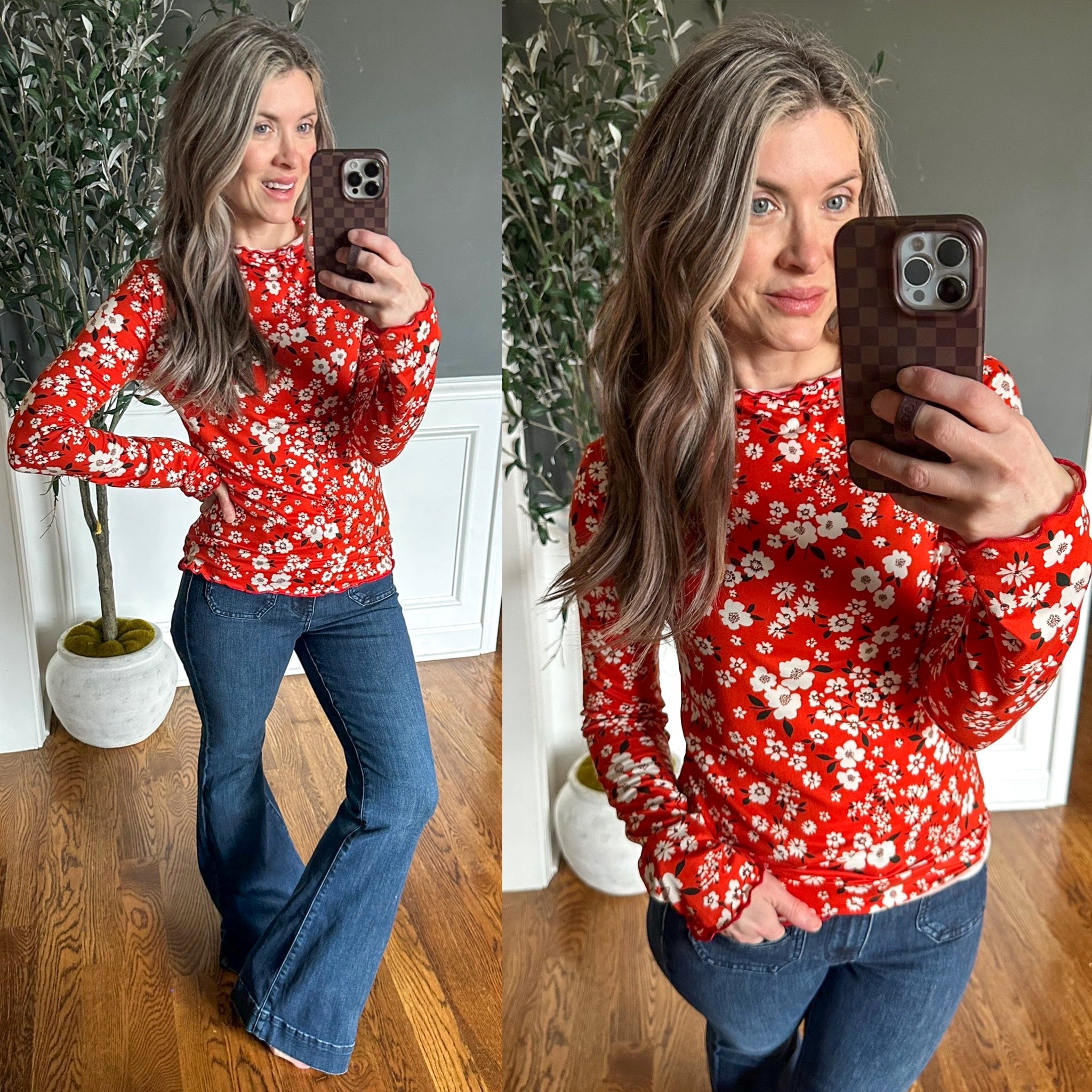 Meet your new second-skin essential: the Somethings in the Air Lettuce Hem Longsleeve Top in Vermillion. Crafted from stretchy jersey knit, this form-fitting top hugs you in all the right ways while moving with your body. The playful lettuce detailing frames the high neckline, cuffs, and hemline with a flirty, feminine touch that's impossible to ignore. Long sleeves keep you covered without sacrificing style, and the high-stretch fabric ensures comfort whether you're running errands or heading out for the evening. Simple, chic, and undeniably fun—this top is ready for anything.
