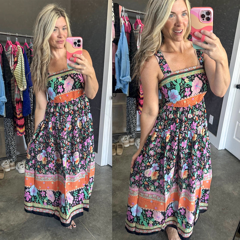 Prepare your summer wardrobe with our You Can Count On It Floral Summer Dress! Crafted with a lightweight woven fabric, square neckline, and adjustable straps for comfortable wear. The silver hardware and cased elastic waistline add a touch of sophistication. Make a statement with this must-have dress!
